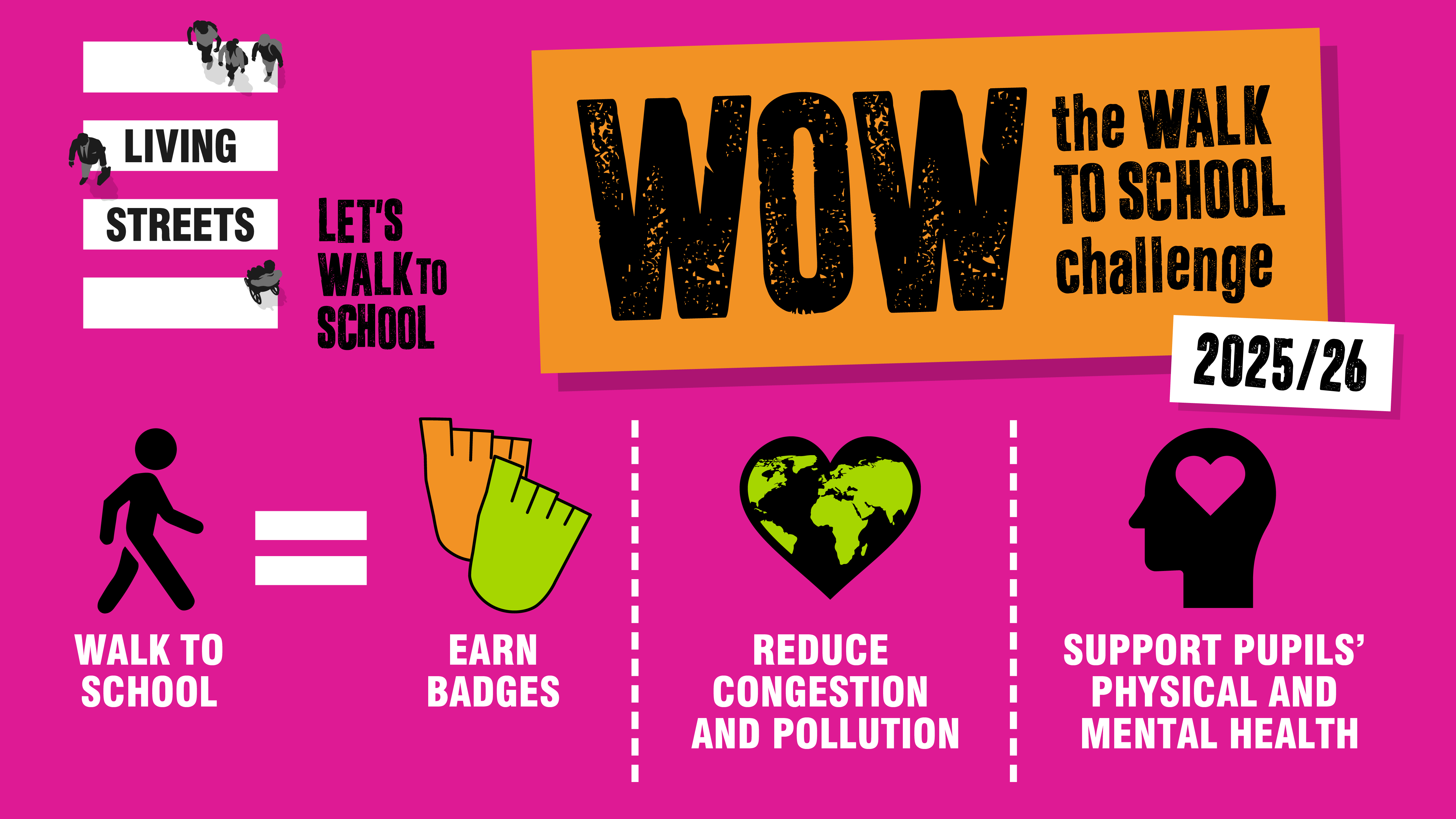 Want safer, cleaner streets and happier, healthier pupils? Join over 2,000 school already getting active with WOW - the walk to school challenge. Watch car journeys to school reduce by 59% and walking and wheeling increase by 18%.